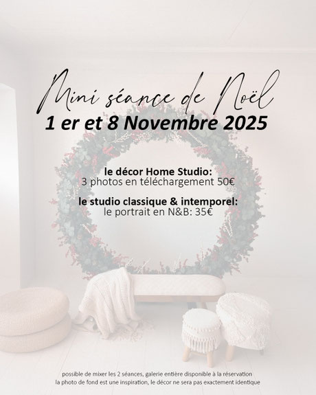 les séances de noël 2025, les 1 et 8 novembre, en studio